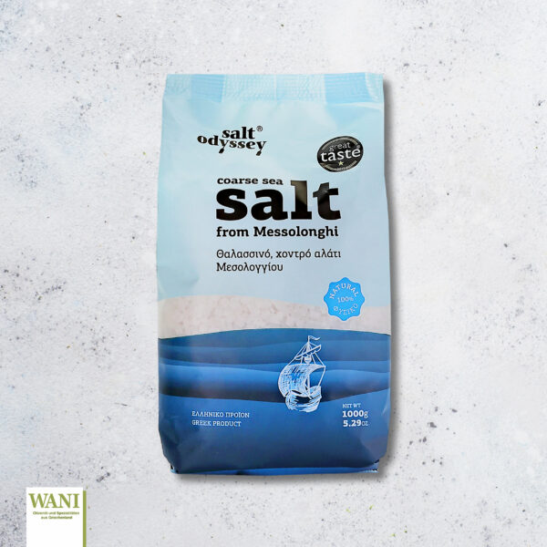 Originates from the salinas of Messolonghi, an unpolluted area environmentally protected by the Ramsar Treaty. The clean crystal grains of salt odyssey’s natural coarse sea salt will melt while cooking or can be grinded in all your favorite dishes as a finishing salt.